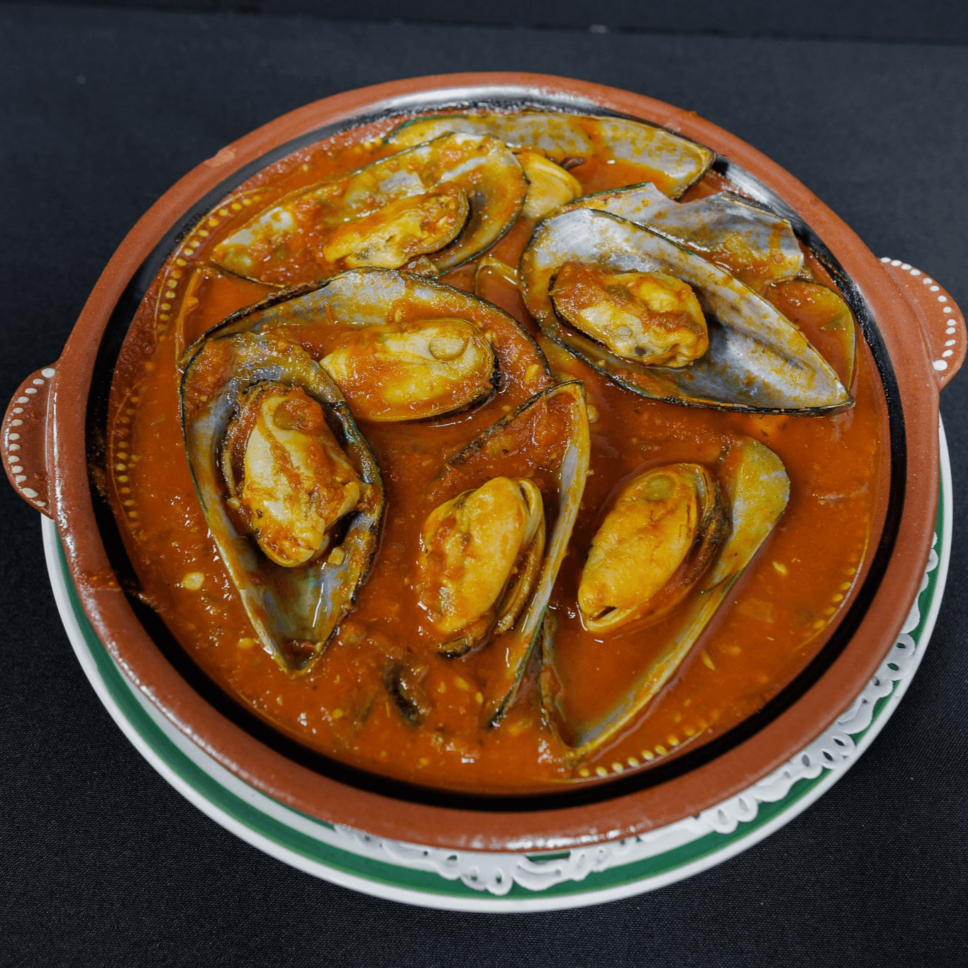 Shrimp, clams, mussels, and lobster tossed in green sauce. Served with rice.